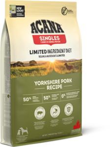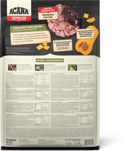 ACANA Singles Yorkshire Pork is loaded with 50% quality pork, WholePrey ingredients meat, organs, and cartilage. Complemented with whole, delicious butternut squash, providing your dog with the protein, nutrients, and fibre they need in order to stay happy, healthy, and strong.