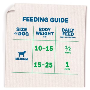 Size of Dog: Large, Dog body weight (kg): >25, Daily Feed (pieces/day): 1 piece