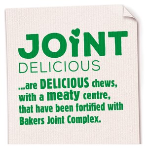 BAKERS® Joint Delicious with Chicken are delicious chews with a soft meaty centre that not only taste great, but contain specific nutrients that help support your dog's joint mobility, too!