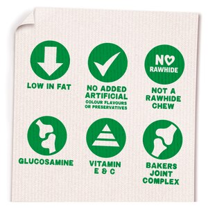 Each tasty, meaty stick contains BAKERS® Joint Complex. Added glucosamine to help keep joints healthy & mobile, and Vitamins E & C to help maintain joint flexibility. The low fat recipe also means they're suitable as a daily treat*.
