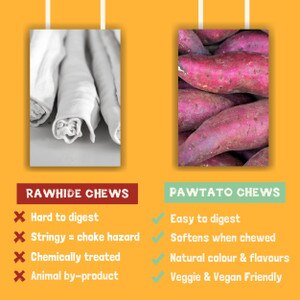 He loves all the Pawtato range but the turmeric and chicory root tubes are his favorite The subtle spicy smell is appealing to him They are a soft chew