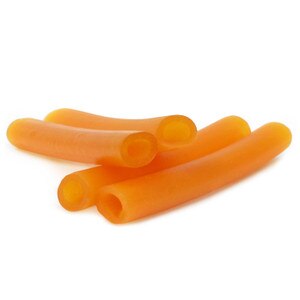 These tubes are gentle on my dog's stomach and he finds them very tasty The chewy texture is satisfying for him The tube shape is good for stuffing too