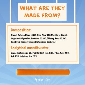 I love that these are made from simple natural ingredients The turmeric is a great bonus and my dog enjoys the taste and texture A fantastic chew alternative
