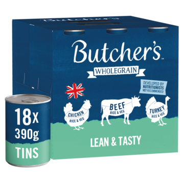 Butchers Lean & Tasty Chunks Wet Dog Food Cans - 18x390g