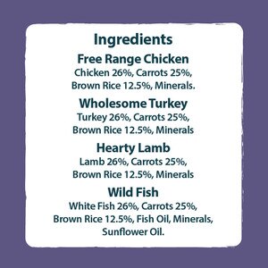 These suit my dog well. She has a bit of a sensitive tum but no troubles with this. It’s easy to store, serve and dispose of packaging. Seems to be based on good food to give balanced diet. My dog refused to eat dry food but this is well liked and doesn’t smell like typical dog food!