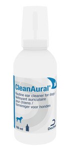 Dechra CleanAural® Dog Ear Cleaner has been formulated by a leading manufacturer of veterinary products to be a mild and effective way to clean dogs’ ears. It contains propylene glycol to dissolve wax, degrease and hydrate the delicate skin in your dog’s ears. Menthol cools and soothes with a fresh fragrance. The solution is pH balanced making it as close as possible to the skin’s natural pH. Dechra CleanAural® Dog Ear Cleaner is suitable to use as a routine cleaner for healthy dog ears