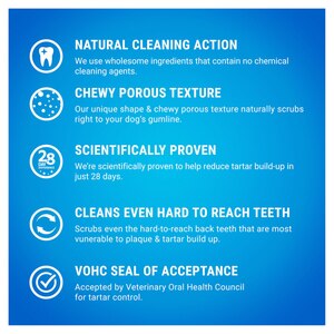 We’ve been using these for a while now and they seem to help our dogs teeth, plus no upset tummies which can be a problem with some other brands. Dogs love them! Price is very competitive at Vetshop and we always find the company reliable.