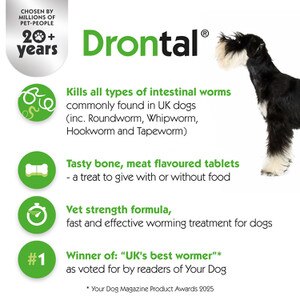 Drontal is always a great product, we have used this for years. Petshop have been a great company to deal with, would highly recommend them. Great service and delivery.