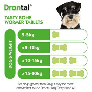 For dogs over 20kg, it may be more convenient to use Drontal Dog Tasty Bone XL Wormer Tablets for Large Dogs (Over 20kg).
