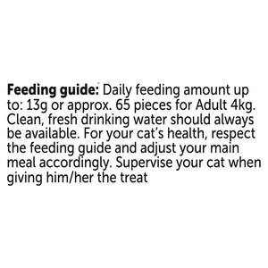 Clean, fresh drinking water should always be available. For your cat's health, respect the feeding guide and adjust your main meal accordingly. Supervise your cat when giving him/her the treat