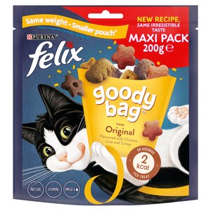 Share more loveably, mischievous moments with your cat with Felix Goody Bags - containing an irresistible, colourful mix of meaty treats that are full of enticing aromas, delicious flavours and fun shapes.