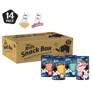 FELIX Goody Bag cat treats are a colourful, irresistible combination of meaty treats that are full of enticing aromas and fun shapes that we're sure your cat will love. FELIX Crispies treats for cats are deliciously air-whipped for a light and crispy texture. Our tasty cat treats are the perfect way to surprise your feline friend with a combination of flavours.