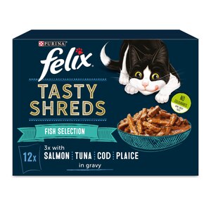 Felix Tasty Shreds Fish Selection In Gravy Wet Cat Food Pouches - 12 x 80g