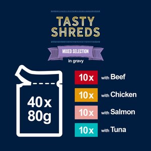 Felix Tasty Shreds Mixed Selection In Gravy Wet Cat Food Pouches - 40 x 80g