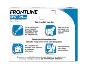 Frontline for dogs is great as it’s easy to apply. Even my jack Russel will let me do it!. No side affects and doesn’t make his skin sore like other treatments