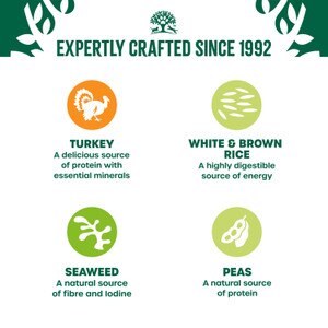 The turkey and rice combination is gentle on my dog's sensitive digestion. She has had no issues with this.