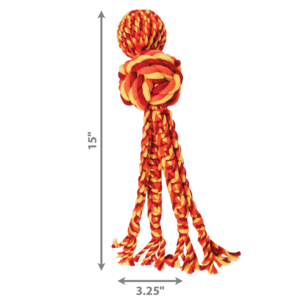 The KONG Wubba Weave with Rope combines the thrill of fetching and tugging with a long-lasting chewing experience. The twisted knotted rope is woven to provide a long-lasting outlet for natural chewing instincts while also helping clean teeth andums. The long tails also made with woven rope are ideal for natural thrashing fun. Adding to the engagement is a squeaker that entices for even longer lasting play sessions.reat for both indoor and outdoor play.
