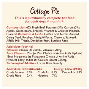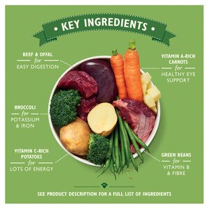 We've put in potato, carrots, broccoli, green beans and apples - and beneficial herbs, plus all the essential vitamins and minerals your dog needs for a really healthy diet.