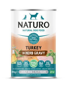 Naturo Adult Turkey & Herb Gravy Wet Dog Food Cans - 12 x 390g