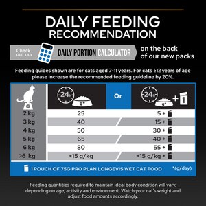 PURINA® PRO PLAN® STERILISED Senior 7+ Years with LONGEVIS® contains all the nutrients needed to support long-term health in senior cats. Low in fat to help maintain healthy weight, it also includes a nutrient blend proven to extend healthy lifespan.