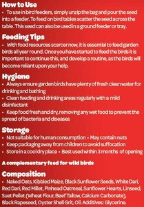 This is a great mix with plenty of high energy ingredients to keep the wild birds going during the colder months They love it