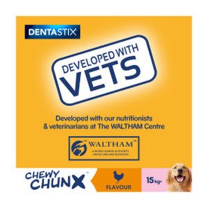 My large dog absolutely loves these chicken chewy chunx They are a perfect quick snack and good for his dental health A brilliant little treat