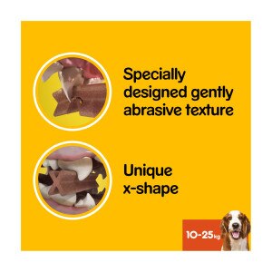 The Pedigree Dentastix Daily dog chews have been designed to be chewed for long enough to be effective. These Pedigree treats for dogs have a gently abrasive texture combined with active ingredients that work with your dog's saliva, help to reduce the build-up of plaque and tartar.