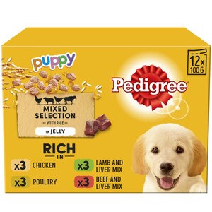 Pedigree Puppy Mixed Variety in Jelly Wet Dog Food Pouches - 12 x 100g