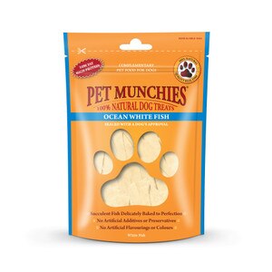 Pet Munchies Ocean White Fish Treats are high in Omega 3 and low in fat, making these tasty treats perfect for health or weight conscious owners.