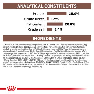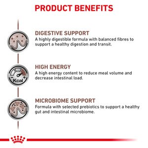 Please note: ROYAL CANIN® Gastrointestinal dry dog food is not suitable for pancreatitis or a history of pancreatitis, hyperlipidaemia, lymphangiectasia, or exudative enteropathy.