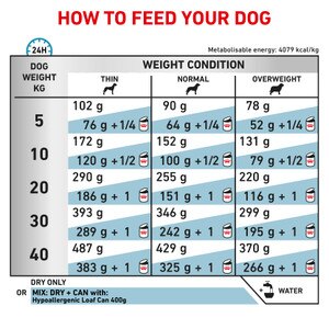 Please note: Royal Canin Hypoallergenic is not suitable for growth, pregnancy, lactation, or dogs with pancreatitis.