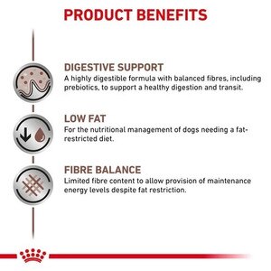 We have been using Royal Canin vet diet low fat dog food for over two years now, our Lurcher Sophie has severe pancreatitis and this is the only food she can have along with her meds.