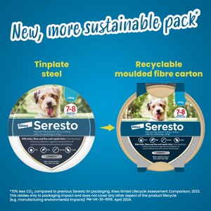 *70% less CO2 compared to previous Seresto tin packaging. Kiwa GmbH Lifecycle Assessment Comparison, 2023.