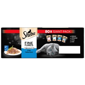 Sheba Fine Flakes Fish Collection in Jelly Wet Cat Food Pouches - 80 x 85g