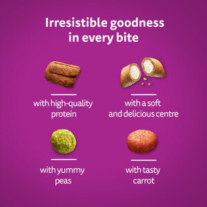 The crunchy kibble helps keep her teeth clean and her gums healthy