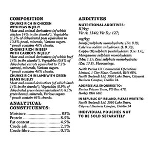 My Cockerpoo loves this food especially the meaty chunks in jelly. These dog food pouches are quite expensive in the supermarket so to buy them at a really reasonable price in bulk is a real bonus.