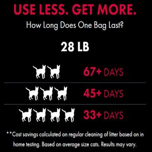 Tried a lot of litters when I got my current cats as one is long-haired and tends to get litter stuck to him & tracks it everywhere. It's not perfect but definitely came out best. It is expensive but lasts a long time. Couldn't see a particular difference between this and the original green bag so usually buy whichever is on offer. I scoop 1-2 times daily and empty & refresh the trays every 3-4 weeks.